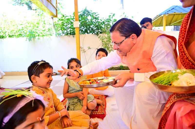 देहरादून। मुख्यमंत्री पुष्कर सिंह धामी ने शुक्रवार को शारदीय नवरात्र की महानवमी के पावन अवसर पर वैष्णवी शक्ति माँ महामाया जगत जननी आदिशक्ति भगवती की उपासना को समर्पित नवरात्रि के पावन पर्व का उद्यापन कर हवन किया। मुख्यमंत्री ने इस अवसर पर मुख्यमंत्री आवास में विधि-विधान से कन्या-पूजन और गौ पूजन किया। मुख्यमंत्री ने आद्याशक्ति, परब्रह्म स्वरूपा देवी माँ से राज्य की उन्नति एवं समस्त प्रदेशवासियों के सुख, समृद्धि की कामना की है।