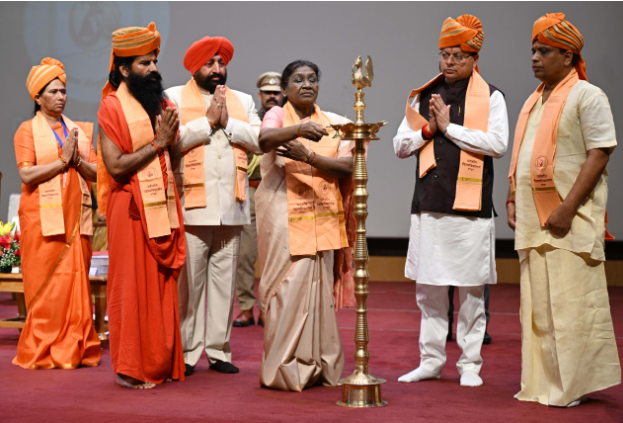 राज्यपाल लेफ्टिनेंट जनरल गुरमीत सिंह (से नि.) ने राष्ट्रपति श्रीमती द्रौपदी मुर्मु का हार्दिक स्वागत एवं अभिनंदन करते हुए उनके देवभूमि आगमन को गर्व का क्षण बताया। राज्यपाल ने कहा कि देवभूमि उत्तराखंड केवल एक राज्य नहीं, बल्कि योग, आयुर्वेद और अध्यात्म का प्राण-केंद्र है। इस पवित्र धरती से प्रचलित योग और आयुर्वेद की परंपरा ने न केवल भारत को, बल्कि समूचे विश्व को स्वास्थ्य, संतुलन और सद्भाव का संदेश दिया है। उत्तराखंड की यह ऋषि-परंपरा आज भी हमें यह प्रेरणा देती है कि ज्ञान का सर्वोच्च उद्देश्य केवल आत्म-विकास नहीं, बल्कि विश्व-कल्याण है।